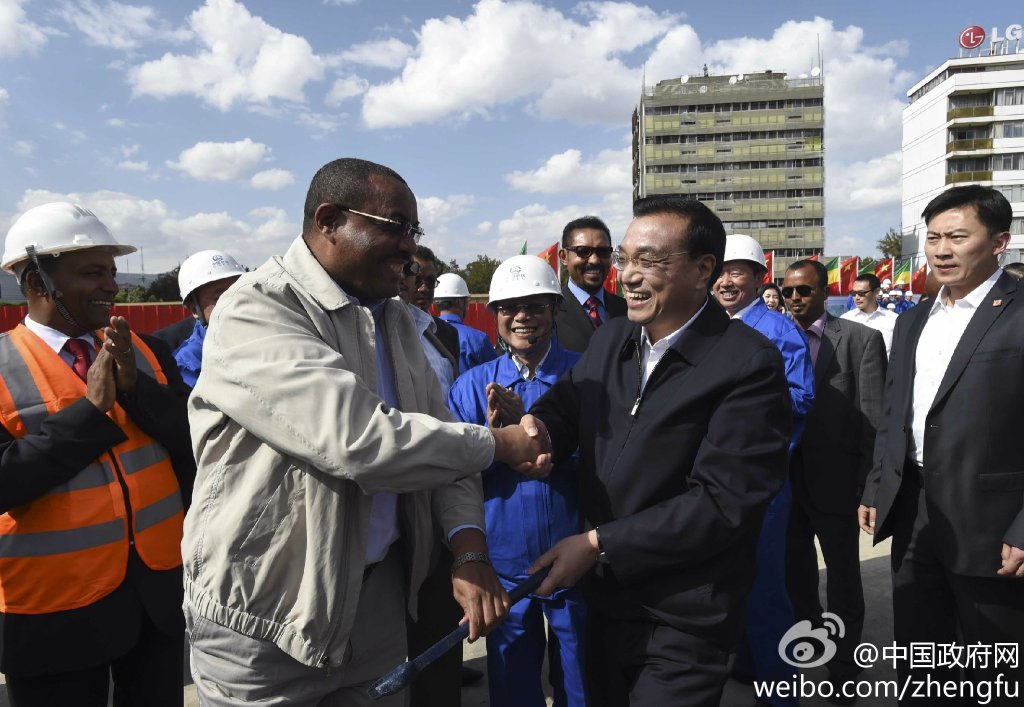????新華網(wǎng)北京5月6日電 據(jù)中國政府網(wǎng)微博報(bào)道,當(dāng)?shù)貢r(shí)間5日下午,李克強(qiáng)在埃塞俄比亞總理海爾馬里亞姆陪同下,參觀中方承建的亞的斯亞貝巴輕軌項(xiàng)目。他對(duì)工人說,埃塞俄比亞是東非乃至非洲的高地,你們一定要確保質(zhì)量,打出品牌,建成中國裝備、鐵路走出去的高地,讓非洲人民受益。