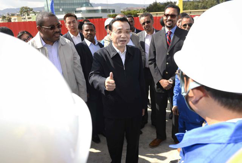 ????新華網北京5月6日電 據中國政府網微博報道,李克強總理當地時間5日下午在埃塞俄比亞總理海爾馬里亞姆陪同下,來到建設中的亞的斯亞貝巴輕軌項目工地考察,慰問建設工人,并共同出席了亞的斯亞貝巴至阿達瑪高速公路的一期竣工、二期開工典禮。
