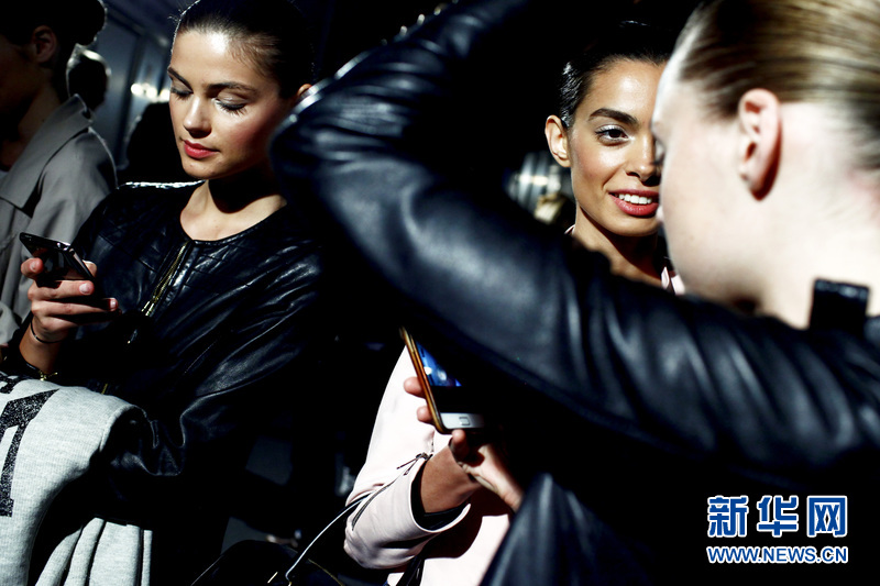場外正在準備登臺展示婚紗的模特。