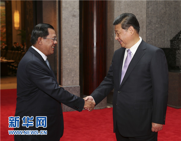 習近平表示,中方愿意同柬方繼續保持高層往來,加強執政黨交往,分享治國理政經驗。中方支持洪森首相帶領柬埔寨人民走符合本國國情的發展道路,支持柬方維護國家安全和穩定的努力,將繼續為柬埔寨經濟社會發展提供力所能及的幫助,推進農業、旅游等領域合作,實施好柬方水電、煤電、經濟特區等項目,結合絲綢之路經濟帶和21世紀海上絲綢之路建設,帶動基礎設施互聯互通。雙方還要擴大人文合作,促進青年交流。