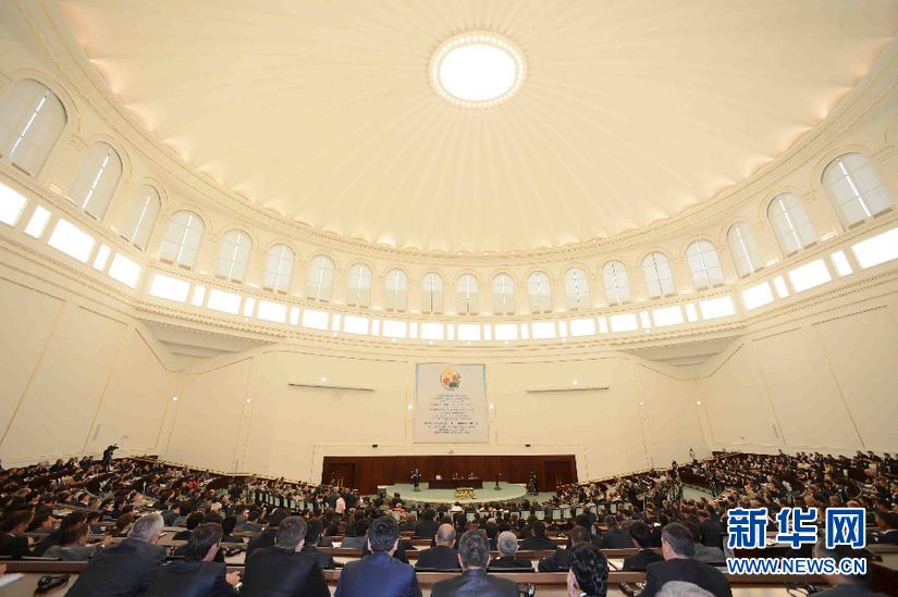 ????6月6日,在烏茲別克斯坦首都塔什干國際會議宮,會議現場。(沙達提 攝)