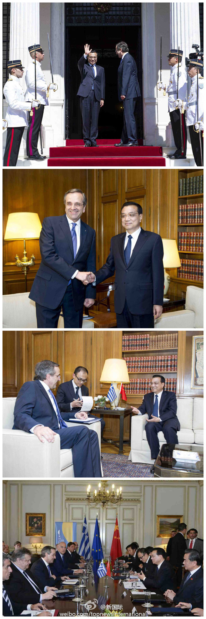 ????新華網北京6月20日電 據新華社“新國際”微博報道,李克強總理在當地時間19日下午在雅典同希臘總理薩馬拉斯舉行會談,雙方就進一步推進中希關系發展,拓展務實合作深入交換意見,達成廣泛共識。李克強表示,中國愿進一步鞏固中希政治互信,擴大務實合作,將兩國全面戰略伙伴關系提升到新的更高水平。