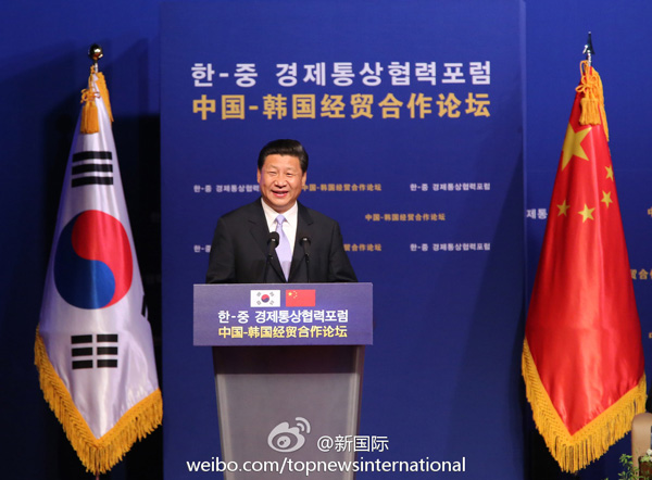 ????新華網北京7月4日電 據新華社“新國際”微博報道,習近平指出,中國對韓投資尚處于起步,“小荷才露尖尖角”,但只要精耕細作,一定會蓮香十里飄。中國人民銀行和韓國銀行簽訂了在首爾建立人民幣清算安排的備忘錄,確定中國交通銀行擔任首爾人民幣清算銀行,這將有利于促進中韓兩國貿易、投資自由化便利化。