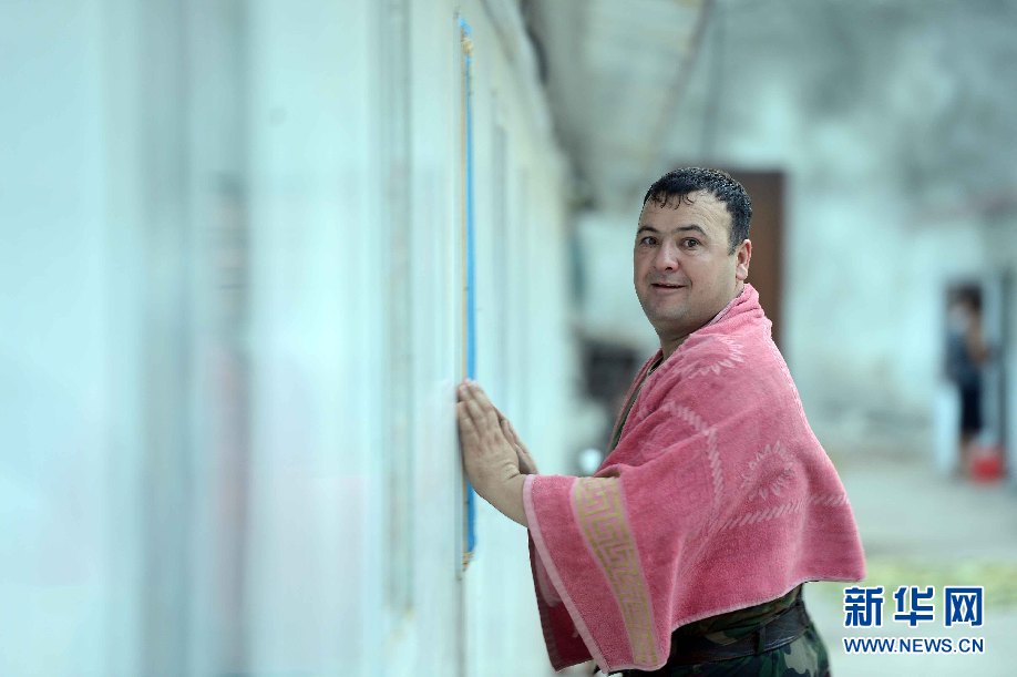 ????7月5日,烏茲別克斯坦安革連至琶布鐵路隧道項目安革連隧道進口西口分部,一名烏茲別克員工下班后在生活區。(沙達提 攝)