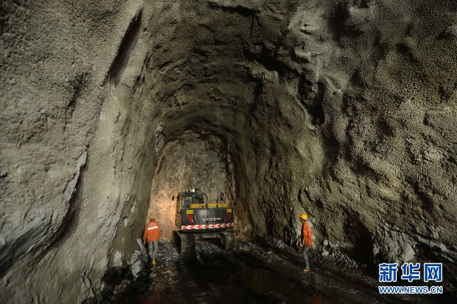 7月5日,工人們在烏茲別克斯坦安革連至琶布鐵路隧道緊張工作。(沙達提 攝)