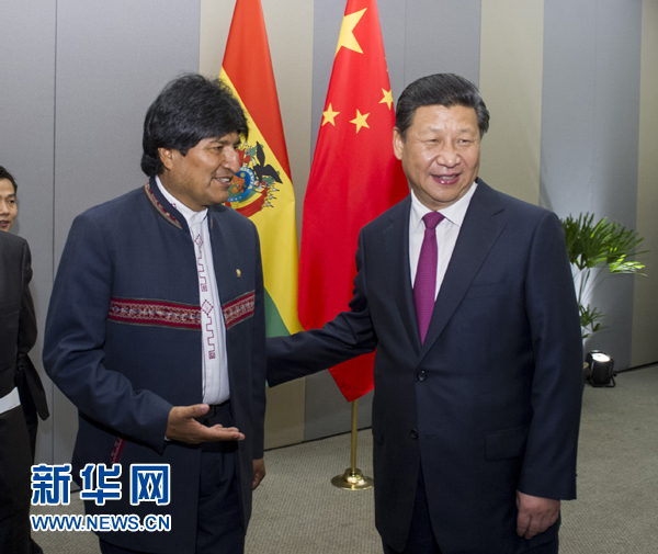 ????莫拉萊斯表示,中國是偉大的國家,玻方希望兩國加強(qiáng)交往,加深兩國人民友好感情。玻中關(guān)系順利發(fā)展,雙方在貿(mào)易、投資、技術(shù)轉(zhuǎn)讓等領(lǐng)域合作良好,玻方希望同中方拓展基礎(chǔ)設(shè)施建設(shè)、衛(wèi)星等領(lǐng)域合作,加強(qiáng)融資安排,實(shí)施更多合作項目。玻方重視金磚國家合作,歡迎成立金磚國家開發(fā)銀行,愿意同金磚國家建立聯(lián)系,共同維護(hù)發(fā)展中國家權(quán)益。