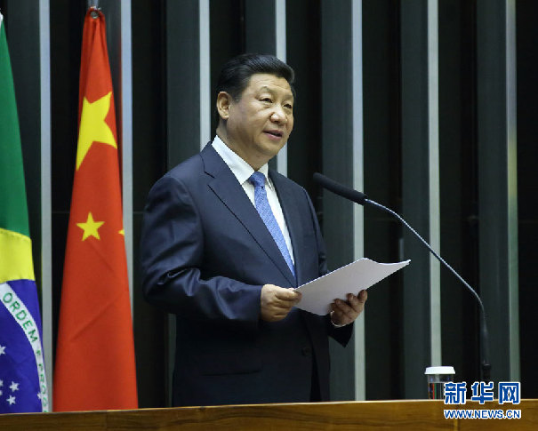 ??? 7月16日,國家主席習近平在巴西國會發表《弘揚傳統友好共譜合作新篇》的演講。 新華社記者蘭紅光攝