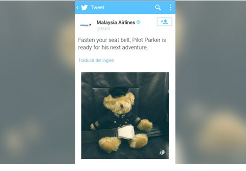 據阿根廷Infobae網站7月17日報道,馬來西亞航空公司的MH17航班在烏克蘭東部墜毀后,該航空公司刪除了MH17航班出事前的最后一條官方推特。這條英文推特的內容是:系上安全帶,飛行員“派克”已經準備好了下一次旅程。推特還配了一張玩具熊假扮成飛行員準備起飛的照片。