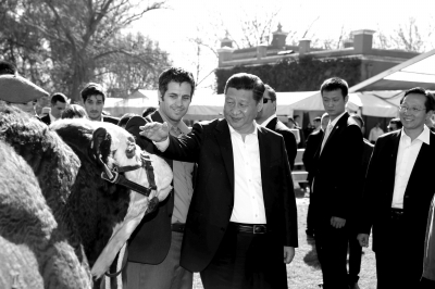 ????習(xí)近平受到農(nóng)場(chǎng)主莫內(nèi)塔一家熱情迎接。莫內(nèi)塔向習(xí)近平介紹,莊園畜養(yǎng)牲畜近萬(wàn)頭,培育了許多優(yōu)秀種馬和肉牛品種。習(xí)近平邊聽(tīng)邊詳細(xì)詢問(wèn)牲畜養(yǎng)殖和農(nóng)場(chǎng)經(jīng)營(yíng)情況。習(xí)近平指出,阿根廷是農(nóng)牧業(yè)大國(guó),農(nóng)業(yè)現(xiàn)代化水平和科技水平很高。中國(guó)也是農(nóng)業(yè)大國(guó)。中國(guó)要發(fā)展,必須首先解決好13多億人口吃飯問(wèn)題。中國(guó)高度重視農(nóng)業(yè),堅(jiān)持立足國(guó)內(nèi)、確保糧食自給自足,同時(shí)積極利用國(guó)際市場(chǎng),參與國(guó)際合作,調(diào)劑農(nóng)副產(chǎn)品。中方愿意同阿方加強(qiáng)農(nóng)業(yè)領(lǐng)域合作,擴(kuò)大農(nóng)產(chǎn)品貿(mào)易。