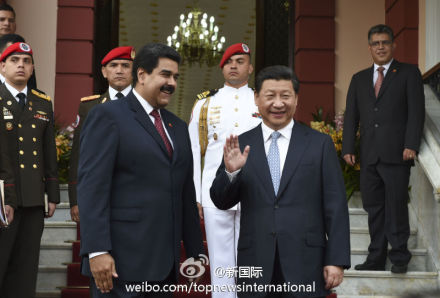 ????新華網北京7月21日電 據新華社“新國際”微博報道,習近平20日被委內瑞拉總統馬杜羅授予“解放者”勛章。習近平說,這不僅是給予我個人的榮譽,更體現了總統先生和委內瑞拉政府對中委關系的高度重視。中委友誼必定像南美洲奧里諾科河一樣綿延不絕、生生不息。(李學仁攝)