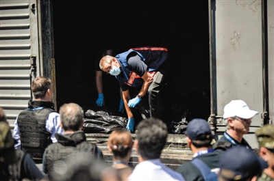 21日,烏克蘭東部小城托列茲,當天的最高氣溫約30℃。這里距離MH17被擊落地點約15公里。當天,首批31名國際組織專家已到達烏克蘭東部,開始遺體的身份鑒定等工作。專家們來自荷蘭、美國、德國、英國、澳大利亞5國。為確定遺體身份,調查組主要有法醫學等鑒定專家組成。