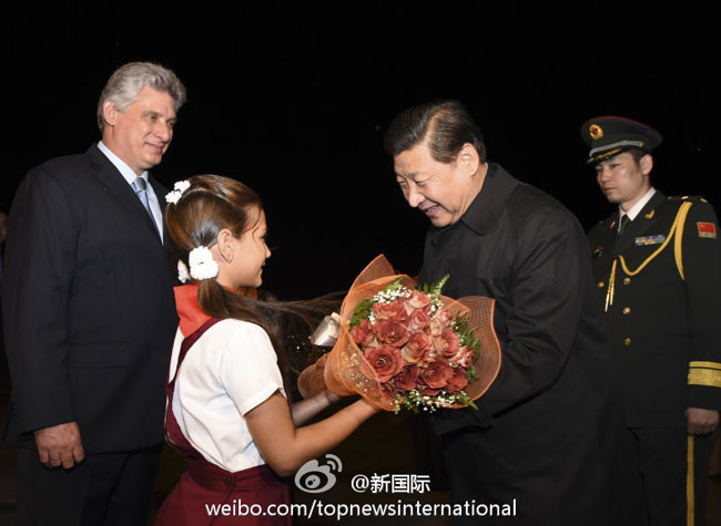 ???? 新華網(wǎng)北京7月22日電 據(jù)新華社“新國(guó)際”微博報(bào)道,結(jié)束對(duì)委內(nèi)瑞拉的國(guó)事訪問(wèn)后,習(xí)近平主席乘坐的專機(jī)經(jīng)過(guò)3個(gè)多小時(shí)飛行,于當(dāng)?shù)貢r(shí)間21日晚抵達(dá)哈瓦那,開(kāi)始對(duì)“加勒比明珠”古巴的國(guó)事訪問(wèn)。2011年,時(shí)任國(guó)家副主席的習(xí)近平曾經(jīng)訪問(wèn)過(guò)古巴。(李學(xué)仁攝)