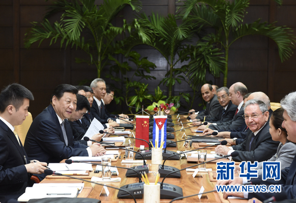 ????新華網哈瓦那7月22日電(記者潘國俊 趙勇陳贄)國家主席習近平22日在哈瓦那同古巴國務委員會主席兼部長會議主席勞爾·卡斯特羅舉行會談。在親切、友好、誠摯的氣氛中,兩國元首共同回顧中古關系發展,規劃兩國關系未來,達成重要共識,同心攜手開創兩國互利友好合作新局面。
