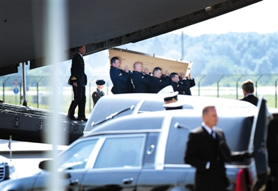 據美國媒體報道,運輸馬航MH17航班遇難者遺體的軍機分別來自荷蘭和澳大利亞。它們23日中午從哈爾科夫一座機場起飛,前往荷蘭艾恩德霍芬空軍基地。23日下午,這兩架軍機抵達荷蘭艾恩德霍芬空軍基地,荷蘭國王、王后和首相呂特前往機場接機,有國民遇難的10個國家派代表出席,并舉行默哀一分鐘儀式。