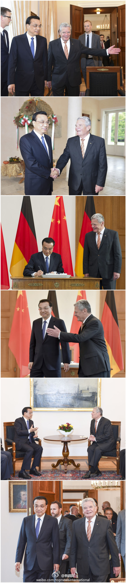 ????新華網(wǎng)北京10月10日電 據(jù)新華社“新國際”微博報(bào)道,10月10日上午,國務(wù)院總理李克強(qiáng)在柏林會(huì)見德國總統(tǒng)高克。李克強(qiáng)說,在中德雙方的共同努力下,兩國合作的深度和廣度達(dá)到前所未有的水平。中方愿同德方一道,充分理解對方國情,筑牢中德友好的基石,開辟兩國全方位戰(zhàn)略伙伴關(guān)系更加美好的前景。