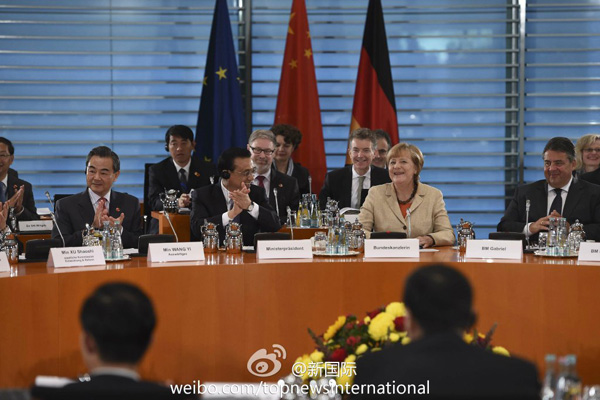 ????新華網(wǎng)北京10月10日電 據(jù)新華社“新國(guó)際”微博報(bào)道,“Happy Birthday!”在第三輪中德政府磋商會(huì)上,德國(guó)總理默克爾開(kāi)場(chǎng)先向中方農(nóng)業(yè)部長(zhǎng)祝福生日!她說(shuō):雖然你不能和家人一起過(guò),但我們會(huì)讓你過(guò)個(gè)愉快的生日。李克強(qiáng)總理提議大家舉水杯為這特別的生日送上祝福,還風(fēng)趣地說(shuō)祝福農(nóng)業(yè)部長(zhǎng),意味著有保障糧食安全的基礎(chǔ)。