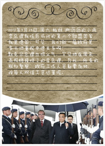 2013年3月15日,李克強當選國務院總理。默克爾是第一位給他打來祝賀電話的外國領(lǐng)導人。真是感動,太有心了!