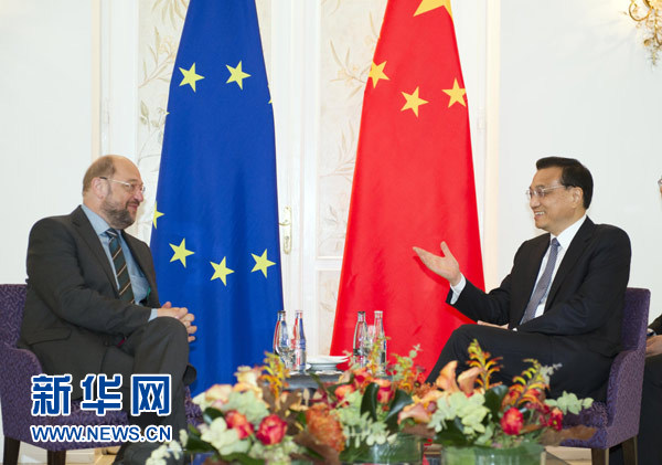 李克強指出,中國高度重視發展同包括歐洲議會在內的歐盟機構的關系,愿與歐方加強互信,深化合作,擴大共同利益,通過對話與協商解決分歧。我期待不久后在米蘭出席第十屆亞歐首腦會議期間,同歐洲理事會主席范龍佩、歐盟委員會主席巴羅佐舉行會晤,回顧過去,展望未來,推動中歐全面戰略伙伴關系取得新發展。期待歐洲議會繼續為此發揮積極作用。