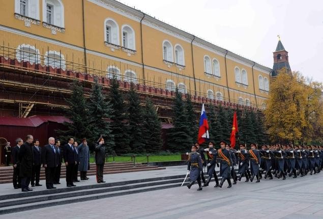 ????新華網(wǎng)北京10月14日電 據(jù)新華社“新華國際”客戶端報(bào)道,一場(chǎng)秋雨洗滌了莫斯科的寒夜。13日一早,克強(qiáng)總理來到克里姆林宮外的無名烈士墓,憑吊衛(wèi)國戰(zhàn)爭中的犧牲者。