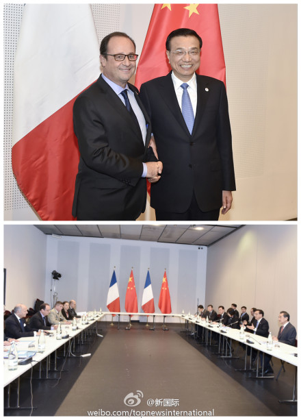 ??? 新華網北京10月17日電 據新華社“新國際”微博報道,李克強總理16日在米蘭會見法國總統奧朗德時表示,希望法方進一步放寬高技術產品對華出口,鼓勵兩國企業全面推進聯合研發、聯合投資、聯合生產、聯合開發第三方市場,為世界提供更多“中法制造”。
