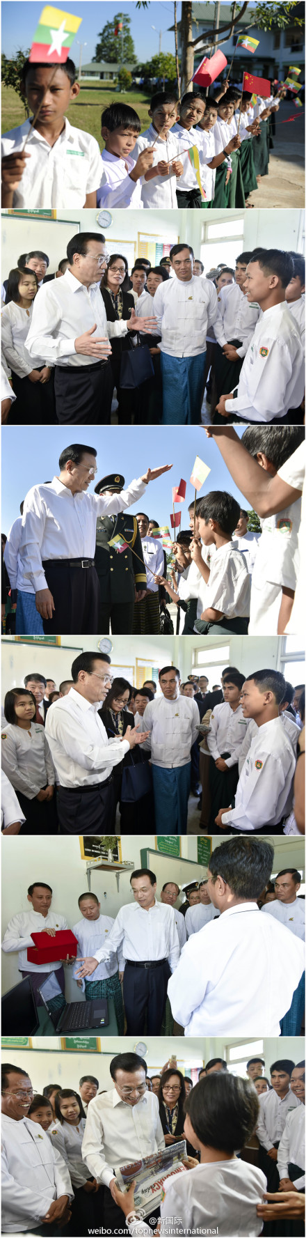 ??? 新華網北京11月14日電 據新華社“新國際”微博報道,李克強總理14日來到內比都第十四中學與緬甸青少年交流。在回答一名中學生提問時,他說,自己這個年齡的時候,中國還比較貧困,沒有大家這么好的條件讀書學習,自己高中畢業后先到農村當農民養活自己,但一直堅持學習,因為相信知識就是力量。?