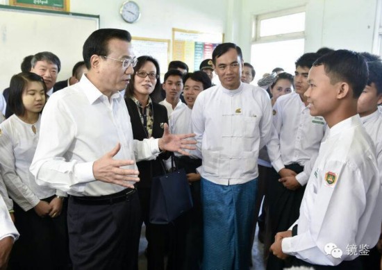 在內比都第十四中學,有個學生問起總理的求學經歷。總理說,自己像你們這個年齡的時候,中國還比較貧困,沒有大家這么好的條件讀書學習,自己高中畢業(yè)后先到農村當農民養(yǎng)活自己,但一直堅持學習,因為相信知識就是力量。