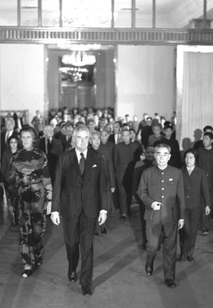 ????惠特拉姆被澳大利亞人譽為“澳中建交之父”。幾乎與基辛格博士秘密訪華同時,惠特拉姆1971年7月率澳大利亞工黨代表團訪華。惠特拉姆次年贏得選舉并出任澳大利亞總理后,立即推動了澳大利亞與新中國正式建交,使澳大利亞成為較早與新中國建交的西方國家之一。