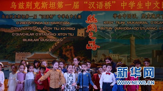 ????新華網塔什干11月16日電(記者沙達提) 烏茲別克斯坦第一屆“漢語橋”中學生中文比賽14日在塔什干舉行,本次比賽由中國駐烏茲別克斯坦大使館主辦,以“學會中國話,朋友遍天下”為主題的本次比賽吸引了來自塔什干187中學、塔什干紡織輕工學院第二附中、塔什干59中學以及塔什干國立東方學院尤努薩巴特區附中等多個中學的10名學子。為了迎接首屆“漢語橋”中學生中文比賽,在塔什干市中學里曾進行了激烈的初選,最終經過層層選拔而脫穎而出的這10名優秀選手,獲得了參賽資格。本次比賽包括三個環節:自選題演講、知識問答和才藝表演三個環節,要求參賽者在規定時間內完成問題、展示中文表達能力、反應能力以及才藝特長。