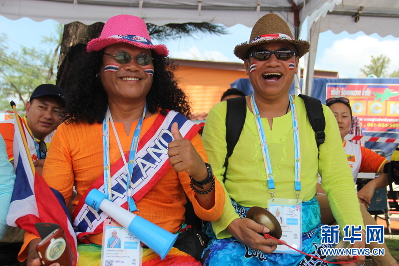 ??? 11月16日,泰國民眾為泰國運(yùn)動(dòng)健兒加油。中國體育代表團(tuán)16日在泰國普吉舉行的第四屆亞洲沙灘運(yùn)動(dòng)會(huì)上勇奪2枚金牌和2枚銅牌。當(dāng)天比賽全部結(jié)束時(shí),中國隊(duì)以3金2銀5銅的成績暫列獎(jiǎng)牌榜第五,東道主泰國隊(duì)以9金11銀12銅的成績暫列金牌榜和獎(jiǎng)牌榜第一。新華社發(fā)(塔納攝)