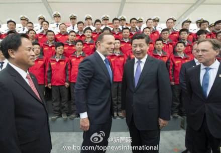 ????新華網北京11月18日電 據新華社“新國際”微博報道,藍天白云,景色宜人。習近平主席18日在澳大利亞塔斯馬尼亞州訪問時來到霍巴特港,在阿博特總理陪同下登上正在這里補給的“雪龍”號極地科考船,在甲板上和全體隊員合影,向大家問好。“這里離南極有多遠?”“走幾天?”合完影后,他佇立甲板,關切詢問有關情況。