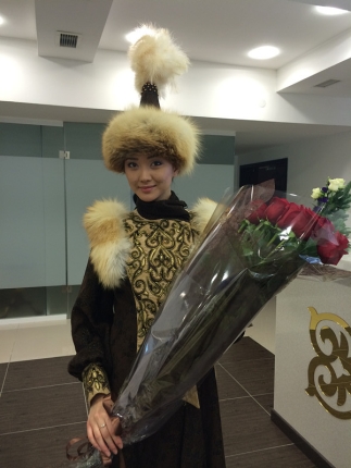 身著民族服裝的哈薩克族姑娘,給克強總理獻上了一束玫瑰花。禮賓官向記者透露,按照當地習俗,迎接客人時一般都送顏色鮮艷的花,而且是送單數。哈薩克語中玫瑰代表著“熱情和祝福”,今天獻給克強總理的就是15支玫瑰花。