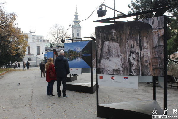 ??? 盡管人們穿著厚厚的外衣,但貝爾格萊德卻并不寒冷,更像是秋天剛剛來到。這兩天,無論是新城區還是傳統的舊城都紛紛出現了中國的色彩。舊城米哈伊洛大公街附近,幾條馬路都掛起了中塞兩國的國旗。卡萊梅格丹城堡還正在進行「世界遺產在中國」圖片展。最神奇的是,記者偶遇的一位老奶奶,得知記者come from China后,立刻用中文唱起了“我愛你中國”,瞬間親切了很多。