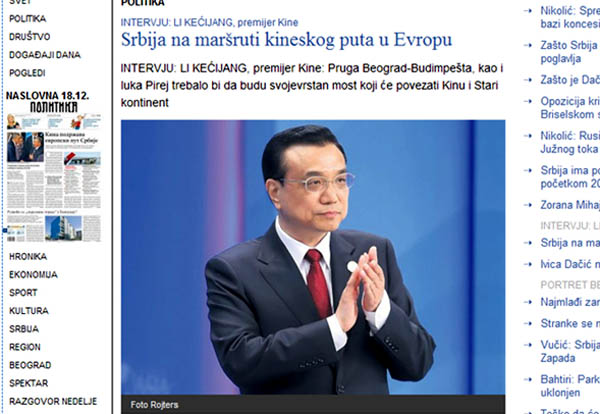 當?shù)貢r間17日,在結束了中國-中東歐國家領導人會晤的相關活動后,中國國務院總理李克強開啟對塞爾維亞的正式訪問。從14日出發(fā)開始,李克強總理已經訪問了哈薩克斯、出席上合組織總理會議和中國-中東歐國家領導人會晤,中東歐多國媒體對總理的出訪活動給予極大關注與高度評價。