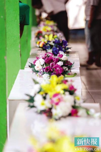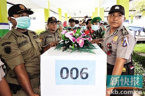 當電視播放當天軍人抬著2具遺體棺材的畫面時,餐廳里瞬間安靜下來,沒有了刀叉的碰撞聲,人們齊齊把眼光聚集在電視上,那令人心痛悲傷的畫面:蓋著鮮花的棺材,被早在泗水守候的兩隊軍人莊嚴而沉重地慢慢抬下飛機,然后輕輕地放在軍車上,在警車的開路下,徐徐地向泗水醫院駛去……