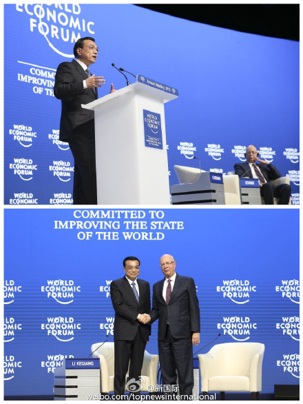 ??? 新華網北京1月22日電 據新華社“新國際”微博報道,李克強總理21日在世界經濟論壇年會上發表特別致辭,為應對全球新局勢提出三大主張。他說,面對復雜的國際局勢,要堅定維護和平穩定;面對多元的世界文明,要共同促進和諧相處;面對多變的經濟形勢,要大力推動開放創新。