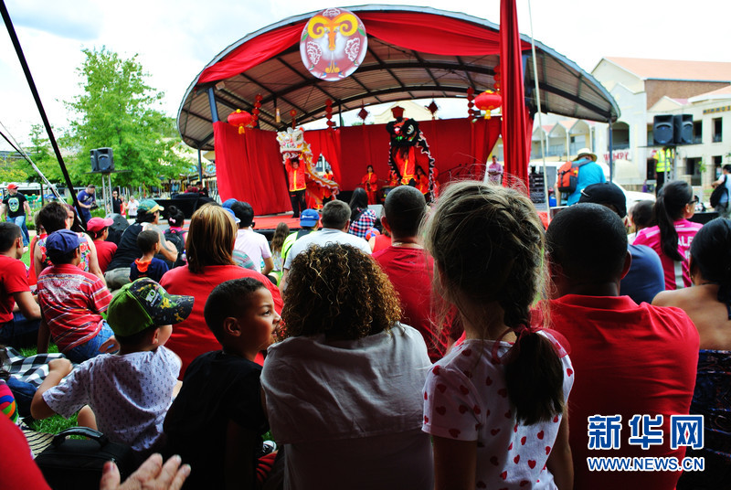 南非眾多觀眾專注地欣賞中國舞獅。新華社發(郭興華攝)