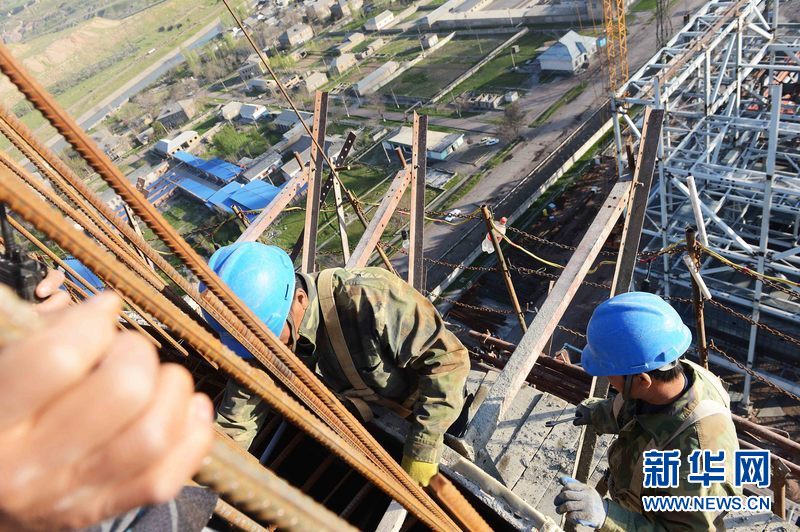 ????烏茲別克斯坦安格連(市)電廠煙囪施工現場,來自中國能建集團黑龍江省火電第一工程有限公司的工人在作業。新華網發 記者沙達提 攝