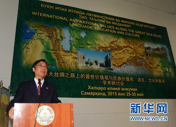 姜鋒還說,上海作為中國發展最前沿城市之一,非常重視高校交流與發展。上海外國語大學重視與烏茲別克斯坦高校學術交流合作。今年起上海外國語大學將開設烏茲別克語,并與撒馬爾罕國立外國語學院共同推動撒馬爾罕孔子學院成為中烏教育合作、文化交流的橋梁。姜鋒強調,支持雙方科研部門就學術交流、人員互訪、合作開展科學研究等項目進行合作。姜鋒表示,撒馬爾罕國立外國語學院和上海外國語大學合作創辦的孔子學院“撒馬爾罕孔子學院”對推動中烏戰略伙伴關系發展,加強共建絲綢之路經濟帶框架下中烏之間的教育合作和人文交流,將會作出自己獨特的貢獻。