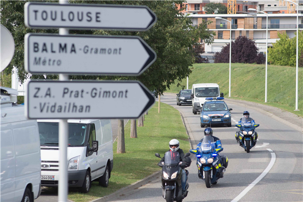 圖為2015年8月1日,在法國圖盧茲近郊,載有疑似馬航MH370航班殘骸的白色貨車駛入航空技術分析機構。新華社發,弗萊德·朗瑟羅攝