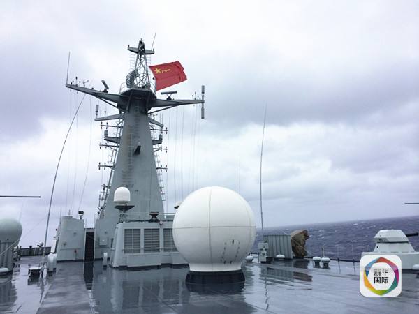 這是2014年4月23日拍攝的在風(fēng)浪里堅(jiān)持執(zhí)行搜索任務(wù)的中國(guó)海軍井岡山艦。(新華社記者白瑞雪攝)