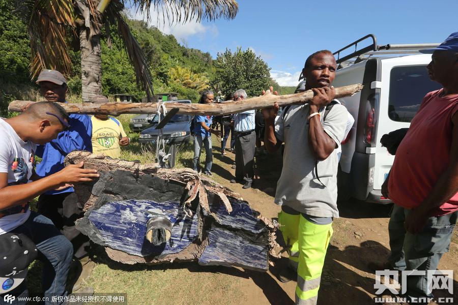 當地時間2015年8月11日,法屬留尼汪島,當地搜救隊獲得的馬航MH370殘骸。