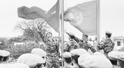 2014年12月8日早上,中國第十三批赴南蘇丹維和部隊隆重舉行升旗儀式。資料圖片