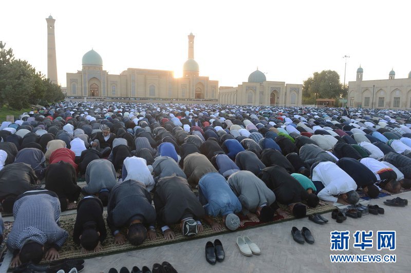 9月24日,在烏茲別克斯坦首都塔什干哈斯特·伊瑪姆建筑群清真寺廣場,人們參加古爾邦節禮拜。當天,烏茲別克斯坦各地慶祝伊斯蘭教傳統節日古爾邦節。“古爾邦節”亦稱“宰牲節”,是伊斯蘭教三大節日之一。 新華社記者沙達提 攝