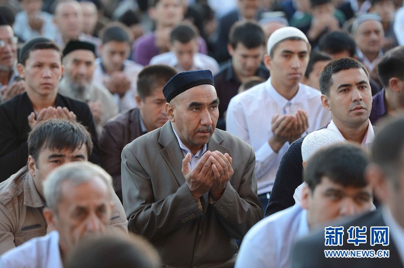 9月24日,在烏茲別克斯坦首都塔什干哈斯特·伊瑪姆建筑群清真寺廣場,人們參加古爾邦節禮拜。當天,烏茲別克斯坦各地慶祝伊斯蘭教傳統節日古爾邦節。“古爾邦節”亦稱“宰牲節”,是伊斯蘭教三大節日之一。 新華社記者沙達提 攝