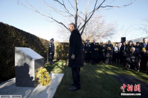 資料圖:當地時間2015年7月17日,澳大利亞堪培拉,馬航MH17空難一周年之際,國會大廈外舉行馬航MH17遇難者紀念碑揭幕儀式,澳大利亞總理托尼·阿博特攜妻子向紀念碑獻花。2014年7月17日,載有298人的馬航MH17客機在靠近俄羅斯邊界的烏克蘭頓涅茨克地區墜毀,機上乘客與機組成員全部遇難。