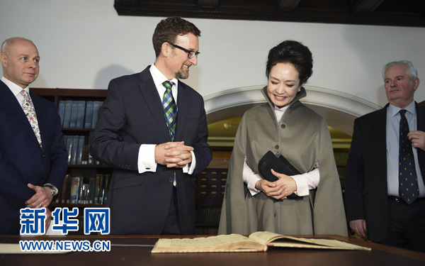 彭麗媛抵達時,受到皇家音樂學院董事會主席溫斯頓勛爵、學院院長、英國友人等熱烈歡迎。在院長陪同下,彭麗媛欣賞了獲獎學生和校友精彩的聲樂、器樂表演,參觀了樂器博物館,觀賞了圖書館珍藏的莫扎特、肖邦等音樂大師創作手稿,并同學院師生進行交流。彭麗媛表示,音樂作為一種高尚的藝術形式,超越國家、民族、歷史、文化界限。皇家音樂學院培養出眾多世界級藝術家。中國有不少音樂作品享譽世界,希望皇家音樂學院今后加強同中國音樂院校的交流,為促進中英教育和藝術合作貢獻力量。