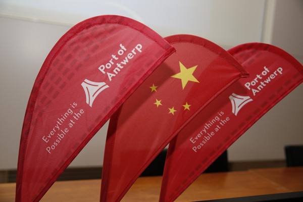 ↑會場的中國國旗與安特衛普港標識。