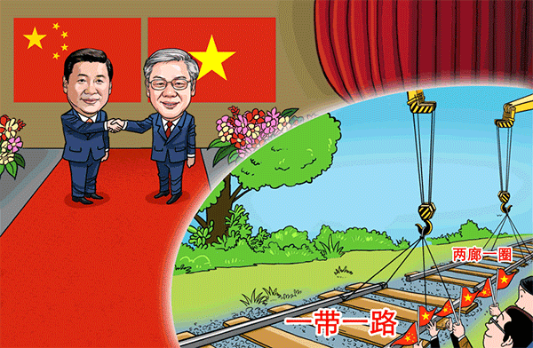 中越是山水相連的友好鄰邦,兩國政治制度相同、發展道路相近、前途命運相關。建交65年來,中越雙邊關系正朝著建設中越命運共同體的方向不斷前進。習近平此訪,將增進互信,凝聚共識,發揚中越“好鄰居、好朋友、好同志、好伙伴”特殊情誼,推動中越關系沿著正確道路繼續發展,擴大“一帶一路”和“兩廊一圈”框架內務實合作,推進中越全面戰略合作伙伴關系邁上新臺階。(作者系中國社會科學院世界經濟與政治研究所國際政治經濟學研究室副主任徐秀軍 漫畫作者蔡艨)