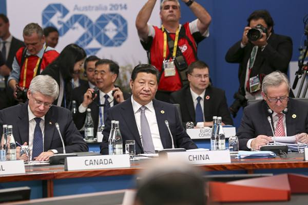 2014年11月15日,G20第九次峰會(huì)在澳大利亞布里斯班舉行。國(guó)家主席習(xí)近平出席會(huì)議并發(fā)表題為《推動(dòng)創(chuàng)新發(fā)展 實(shí)現(xiàn)聯(lián)動(dòng)增長(zhǎng)》的重要講話(huà)。 新華社發(fā)