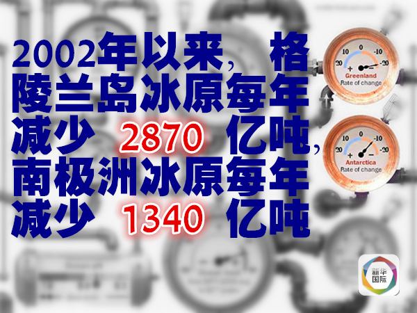 科學家認定,由于氣溫和海水溫度升高的雙重影響,分別位于格陵蘭島和南極洲的地球兩大冰原正在消失。美國國家航空航天局噴氣推進實驗室收集的衛星數據顯示,2002年以來,格陵蘭島冰原每年減少2870億噸,南極洲冰原每年減少1340億噸。